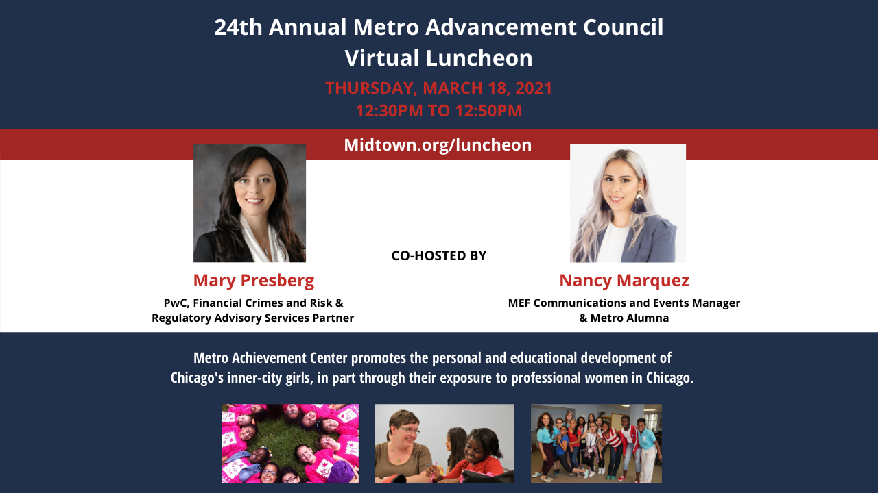 Watch the video of the luncheon here on Thursday, March 18th - Learn more about Metro’s programs from students, staff, volunteers, and alumnae during the virtual event streamed here and on YouTube on March 18th at 12:30pm.