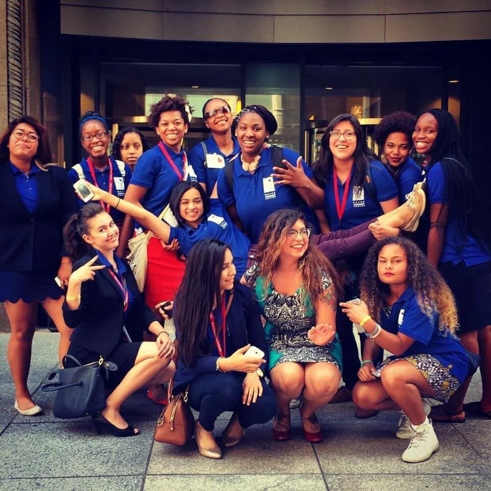 Ms. Palos (bottom, center) pictured with some of her Metro High School students during her previous role as a Metro Achievement Center Instructor. She will now work full-time as Metro’s High School College Orientation Program Director to help even more Chicago High School girls excel.