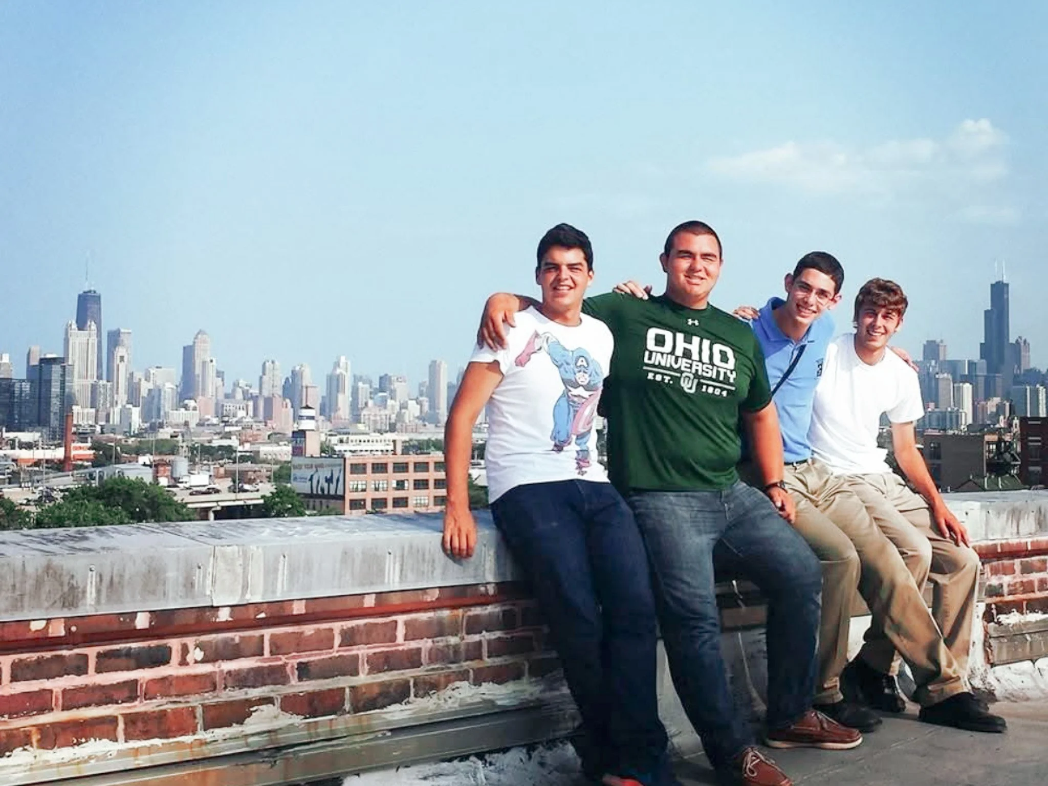 This photo, taken in 2014, features Micheil Pruni (second from left) with fellow Midtown summer advisors Frank Palos, Anthony Giuntini, and Peter Foley. These summer advisors are high-performing college students with strong character from across the globe who serve at Midtown for 7 weeks each summer and assist with program execution and student mentorship.